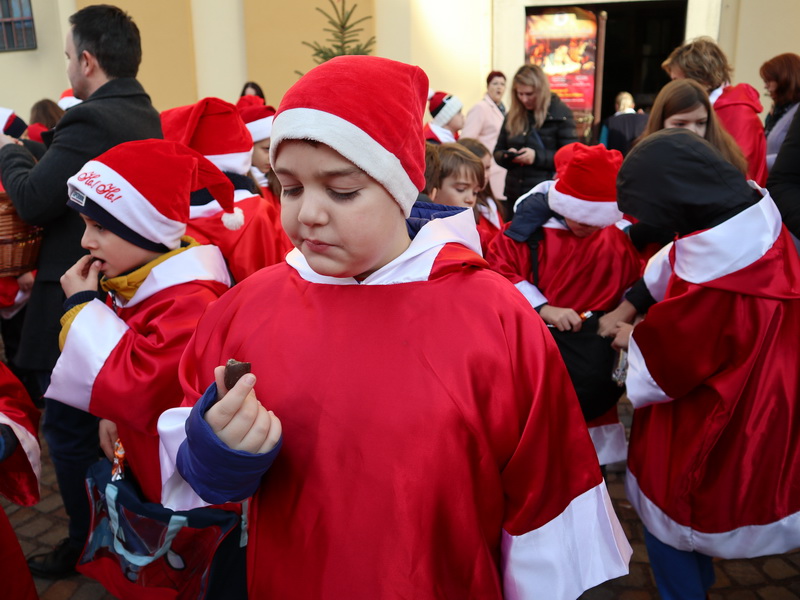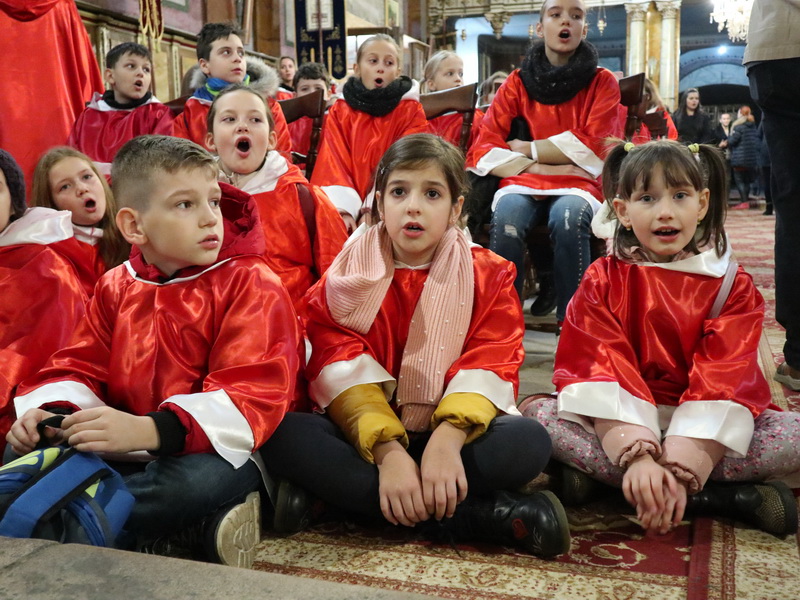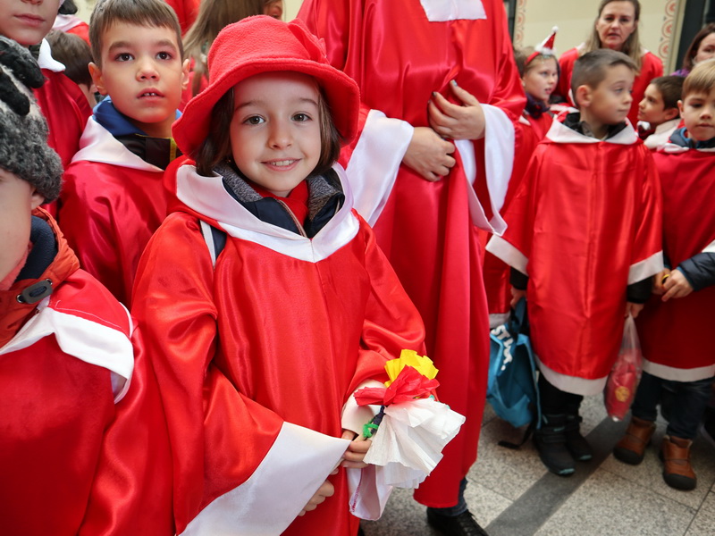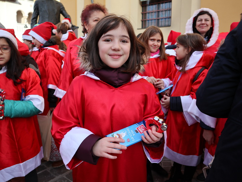Colinda moșuleților a început la ora 10, de lângă statuia patronului spiritual al liceului, Iuliu Maniu. Acolo au fost așteptați de episcopul greco-catolic Virgil Bercea, care la finalul recitalului i-a cadorisit pe micuți cu dulciuri.