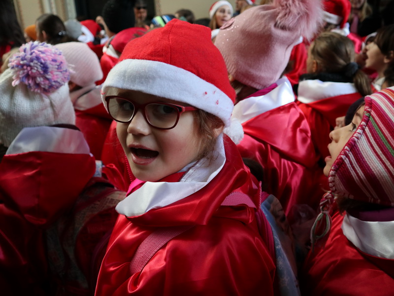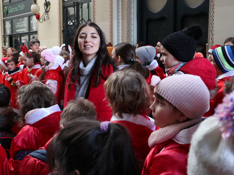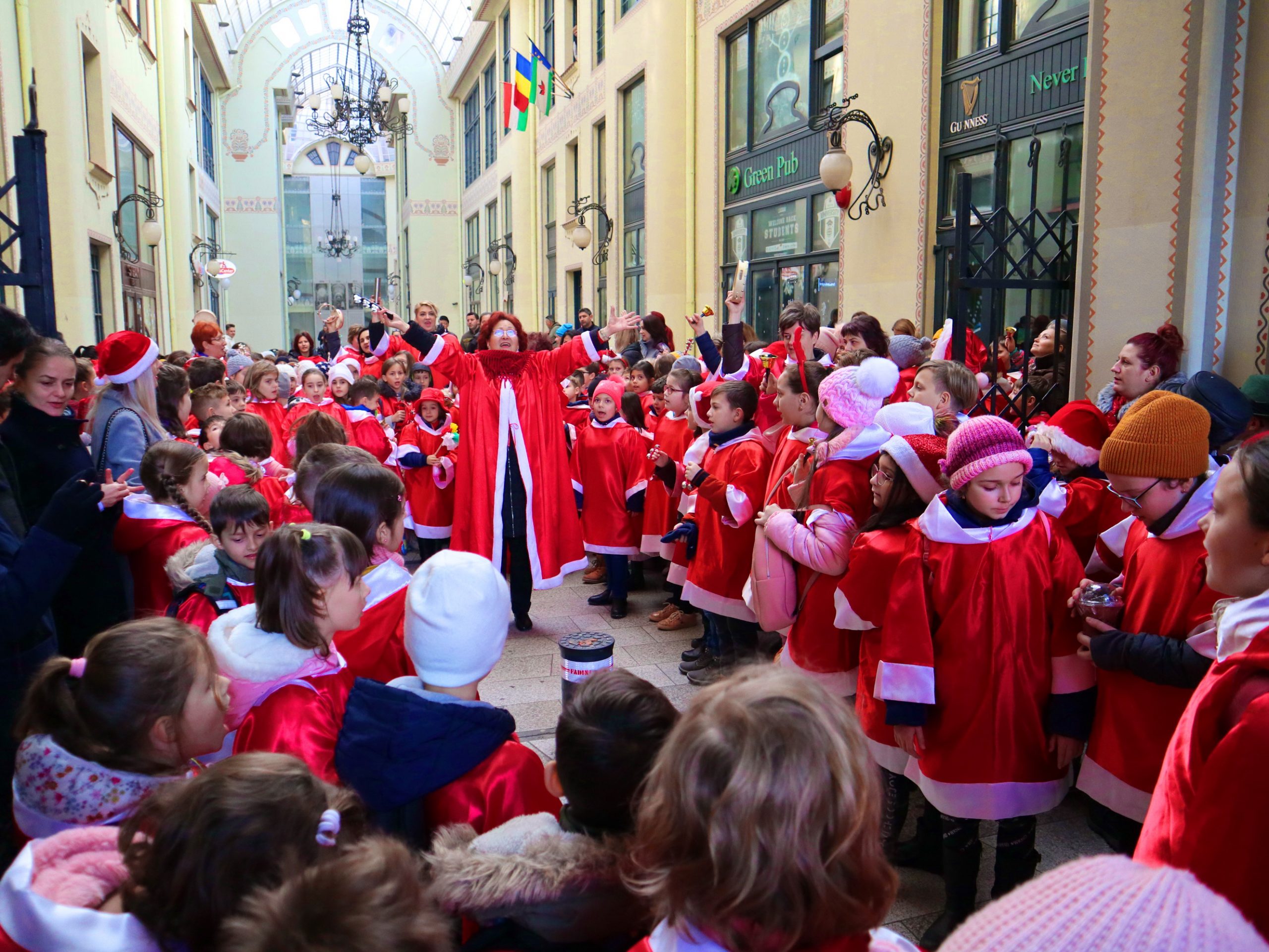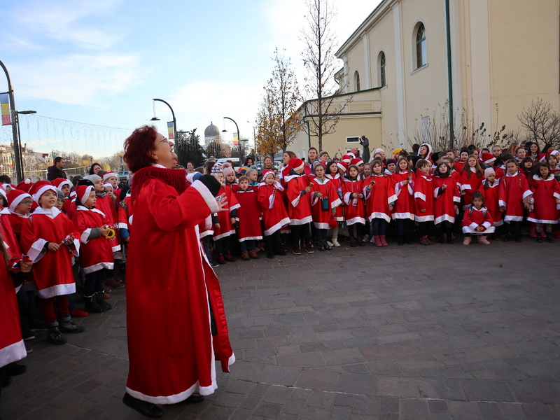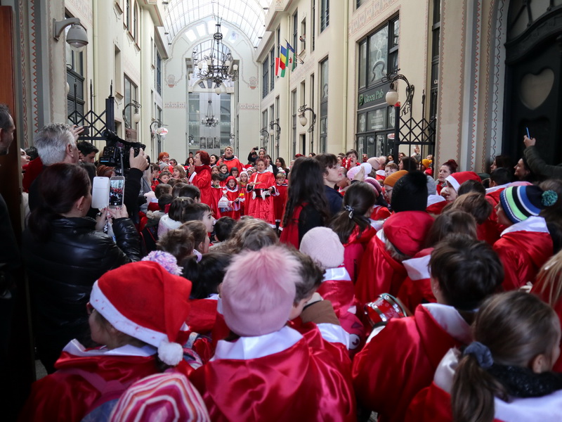 La semnalul învățătoarelor, elevii claselor 0-IV s-au îndreptat apoi spre casa de sticlă din mijlocul Târgului de Crăciun, de unde cei opt DJ radio ZU transmit live. Acolo au fost întâmpinați de Flick – Domnul Rimă și de Răzvan Popescu care au transmis live colinda copiilor. De asemenea, cei doi DJ-i au vorbit și cu câțiva copii și cu directoarea liceului, Antonia Nica.