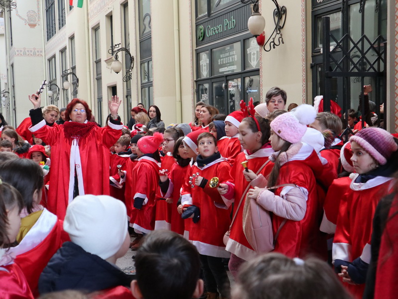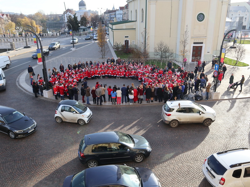 Aproape 400 de elevi ai Liceului Greco-Catolic Iuliu Maniu îmbrăcați în moșuleți au colindat, joi, principalele instituții din centrul Oradiei, dar și căsuța de sticlă Radio Zu.
