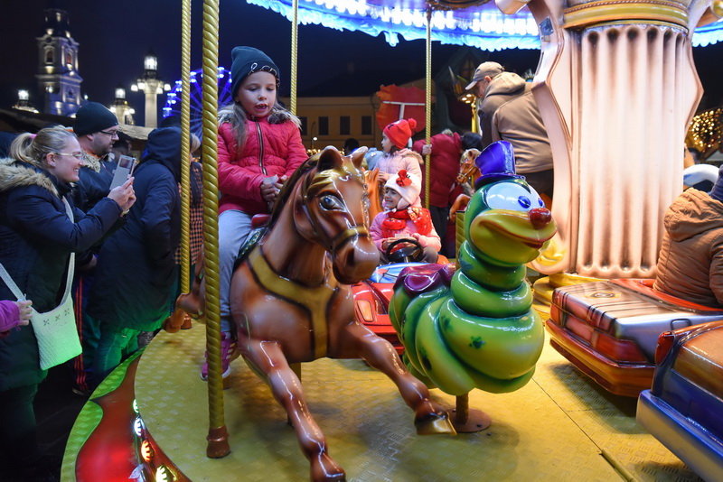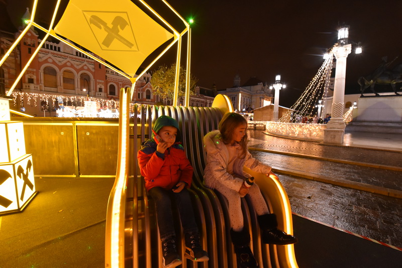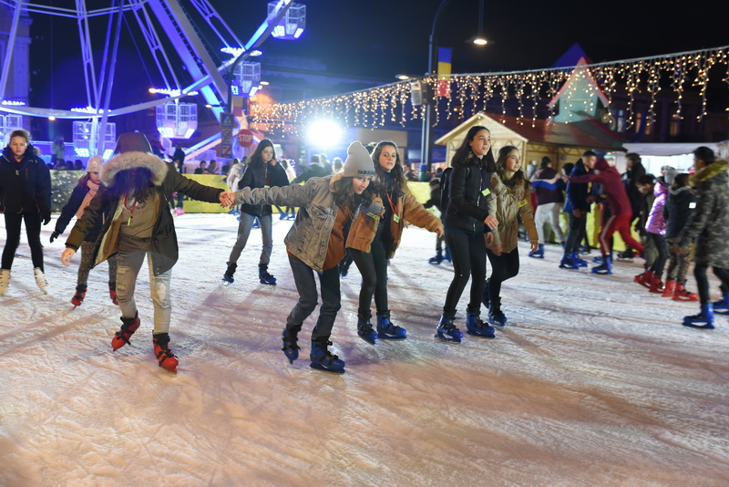 Oricum, cei care au trecut prin Piața Unirii nu au dus lipsă de activități. Prichindeii s-au înghesuit să își facă poze cu Moș Crăciun, dar și la patinoarul de mari dimensiuni. De asemenea, pe lângă roata-carusel, ale cărei luminițe au strălucit, totuși, vineri seară, la Târg a fost amenajat şi un carusel mai mic, pentru copilaşi, şi un trenuleţ colorat.