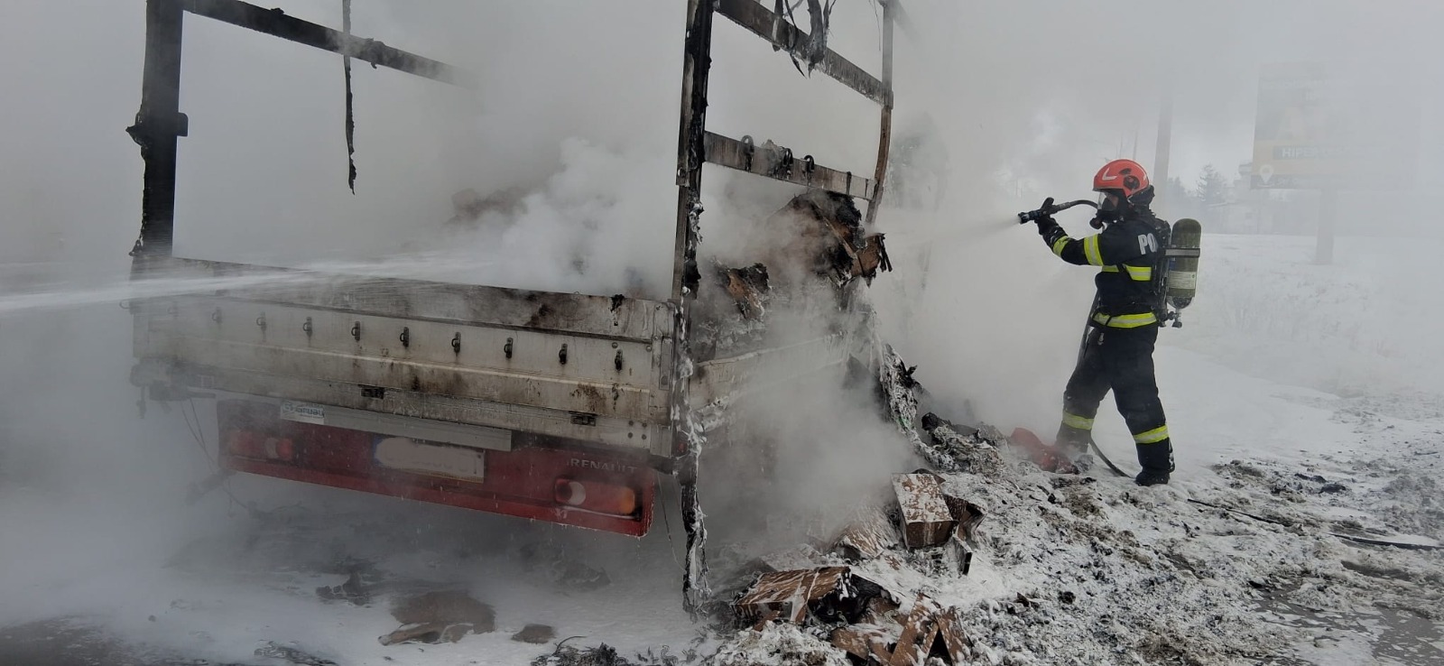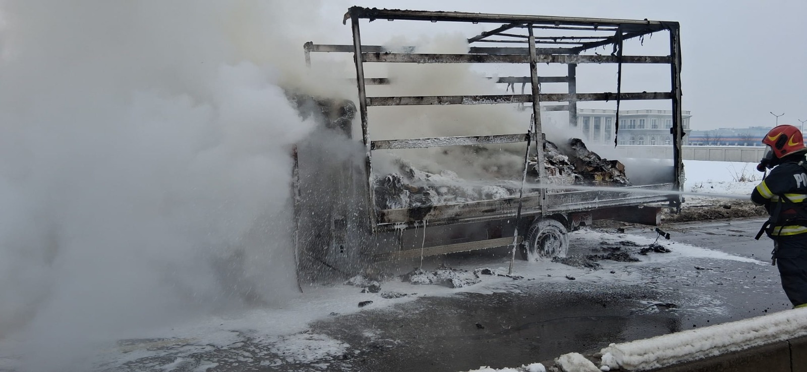 O autoutilitară a fost distrusă complet de un incendiu izbucnit marți, 14 ianuarie, în timp ce vehiculul rula pe Calea Aradului din municipiul Oradea.