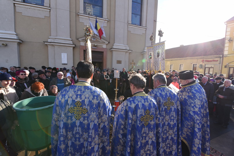 Orădenii ortodocși și greco-catolici au participat, luni, în centrul orașului, la slujbele de sfințire a apei oficiate în Biserica cu Lună și la Catedrala Greco-Catolică „Sfântul Nicolae”.