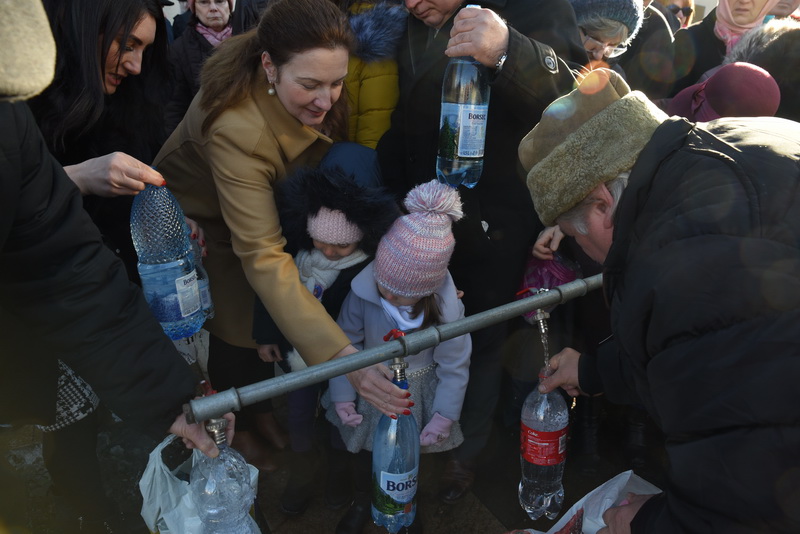 „Tu însuţi dar, Iubitorule de oameni Împărate, vino acum prin pogorârea Sfântului Tău Duh şi sfinţeşte apa aceasta”, a invocat la rândul său, de trei ori, părintele paroh Teodor Cristea în faţa credincioşilor nerăbdători.
