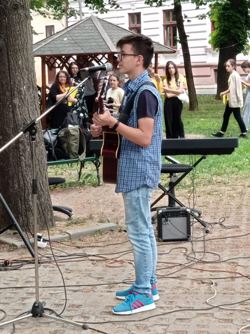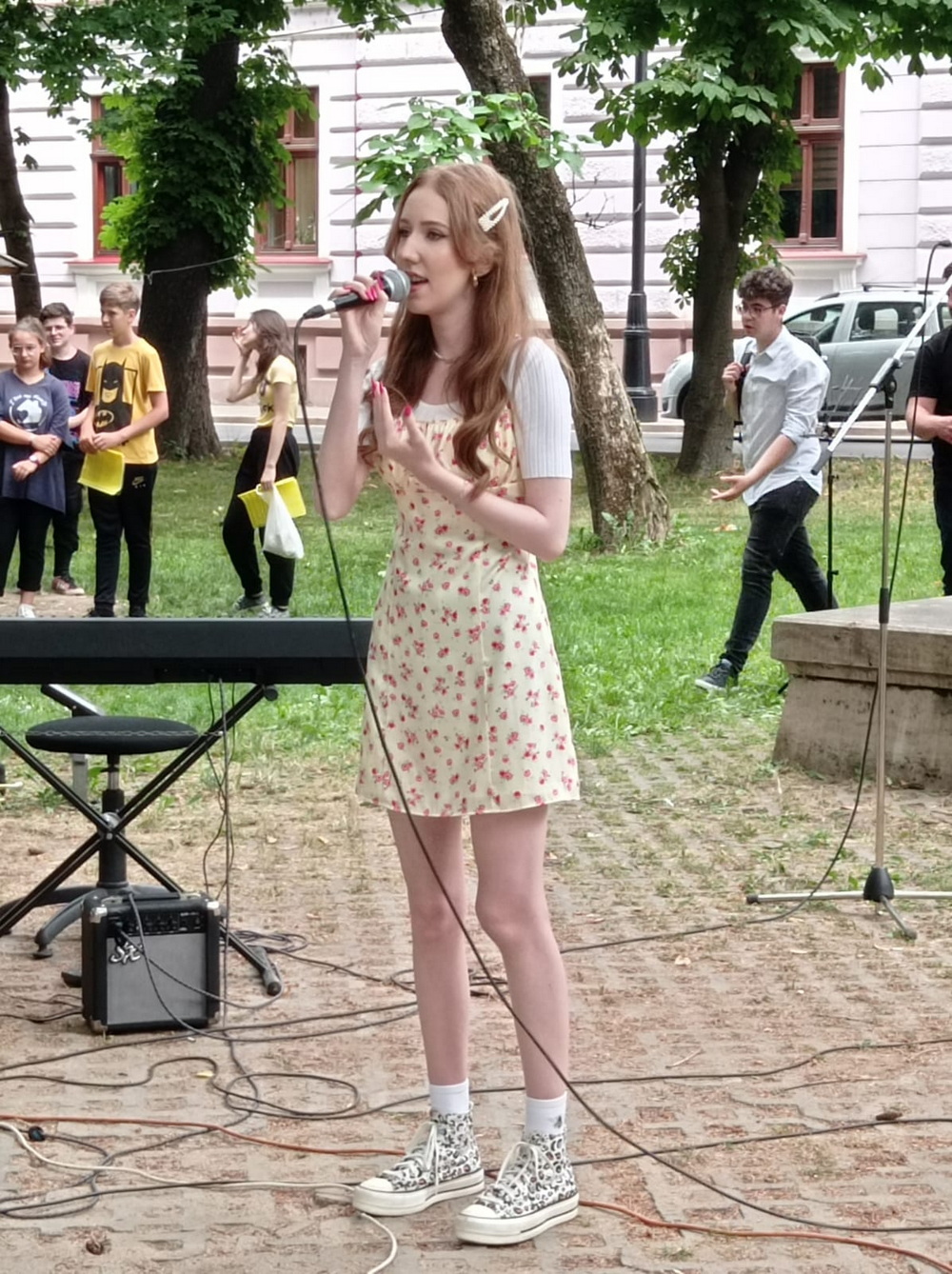 Talentații elevi au fost răsplătiți cu aplauze de public, format din colegi de liceu, profesori, părinți dar și orădeni care pur și simplu treceau prin parc în momentul recitalului.