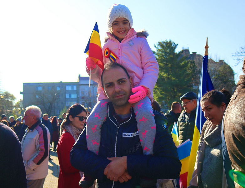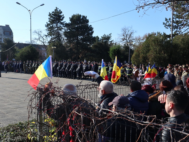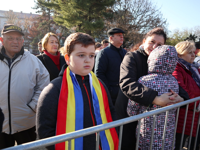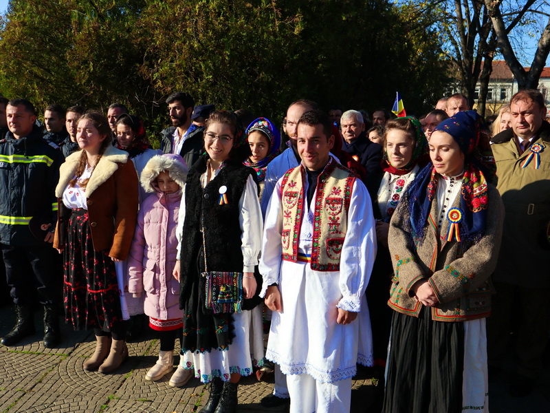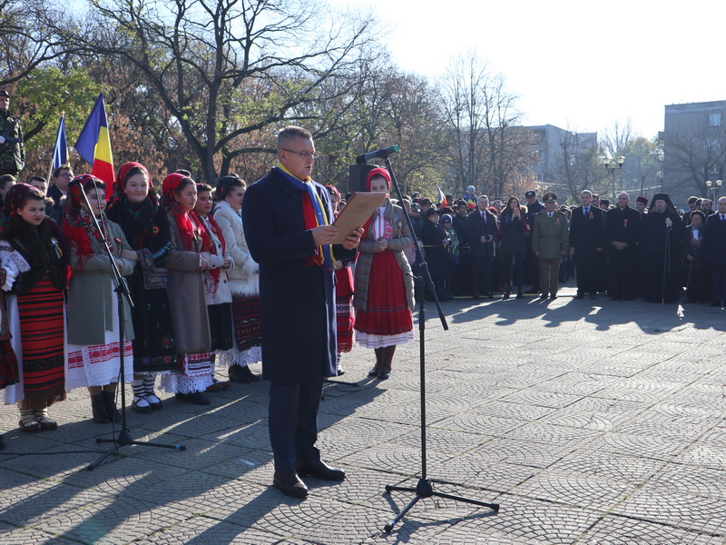 Evenimentul a debutat la ora 12, când pe platoul de lângă statuia Ostașului Român oficialitățile au luat cuvântul. Primul care a vorbit a fost prefectul Ioan Mihaiu, acesta fiind ultimul său discurs înainte de a fi schimbat din funcție. „Acum 100 ani, Marea Unire a fost cea care a definit România ca stat naţional, suveran, independent şi, cel mai important, unitar. Tot zbuciumul nostru istoric a fost concentrat în 1918 în dorinţa de înfăptuire a României Mari. Şi am reuşit!”, a declarat Mihaiu.