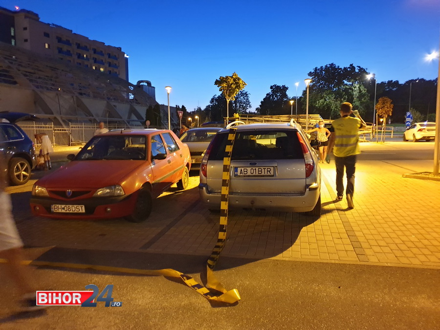 Surpriză neplăcută, pentru proprietarii mai multor mașini care erau parcate, sâmbătă după amiază, la aquaparkul Nymphaea, în zona Bazinului Olimpic din Oradea, aflat în renovare.