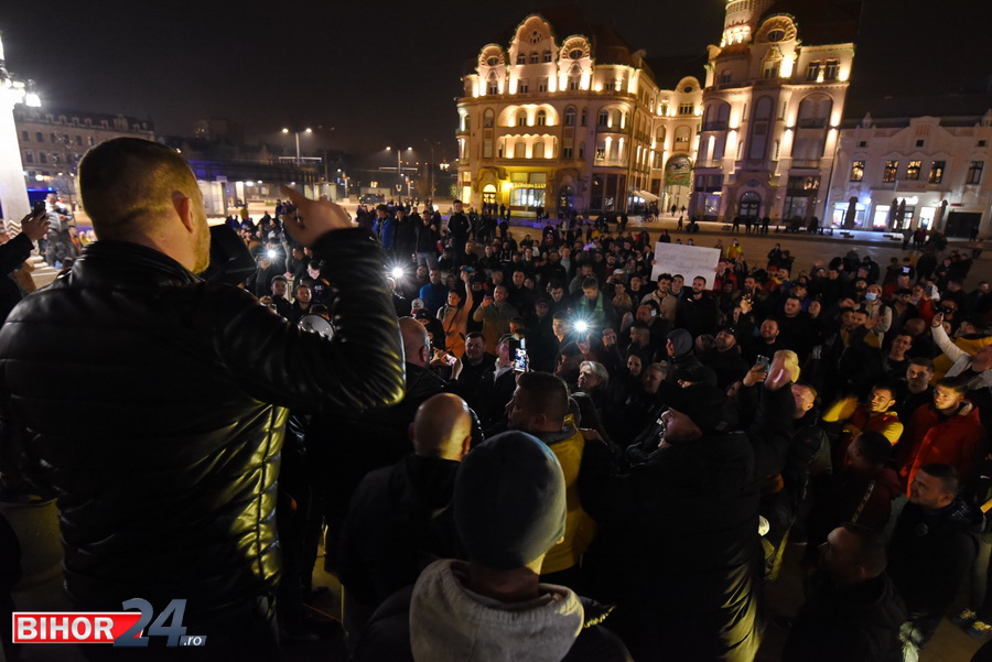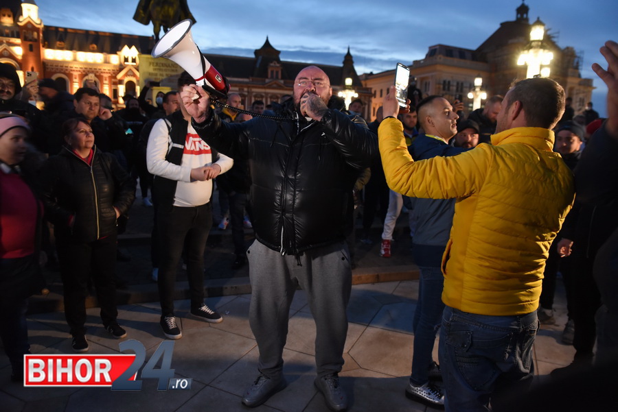 Protestul, anunțat pe rețelele de socializare, a început în jurul orei 20 în Piața Unirii, liderul manifestanților fiind cunoscutul luptător orădean Sandu Lungu. Acesta a luat cuvântul la o portavoce spunându-le celor prezenți că nu trebuie să permită ceea ce se întâmplă și să iasă cu curaj în stradă.