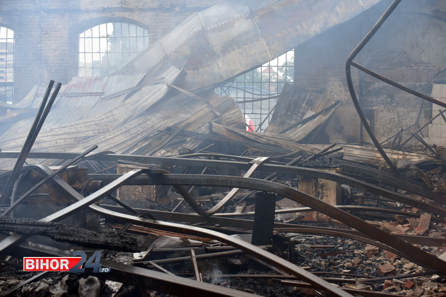 O parte din zidurile construcției – monument istoric industrial – s-au prăbușit. La fel, bucăți din copertina metalică zac printre grămezile de cărămizi.
