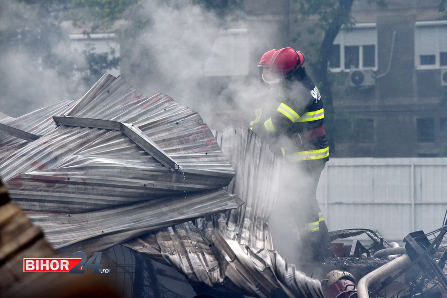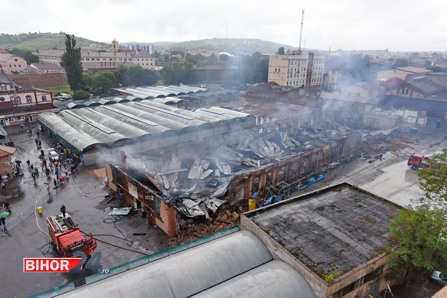 Incendiu devastator! Hala veche din Piața Cetate din Oradea a luat foc (FOTO / VIDEO)
