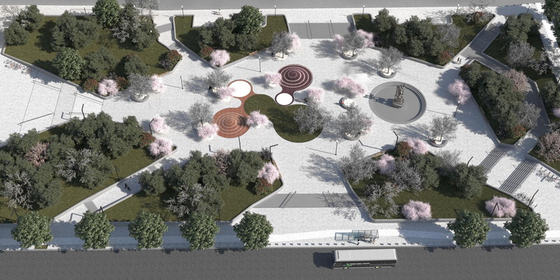 „Proiectul a fost astfel conceput încât vegetaţia existentă să se păstreze şi să se adauge vegetaţie care să asigure un peisaj multicolor pe o perioadă cât mai mare din an. În jurul copacilor şi în jurul zonelor verzi vor fi locuri unde să se poată sta. Zona centrală a pieţei este proiectată ca loc de joacă pentru copii”, a explicat viceprimarul.