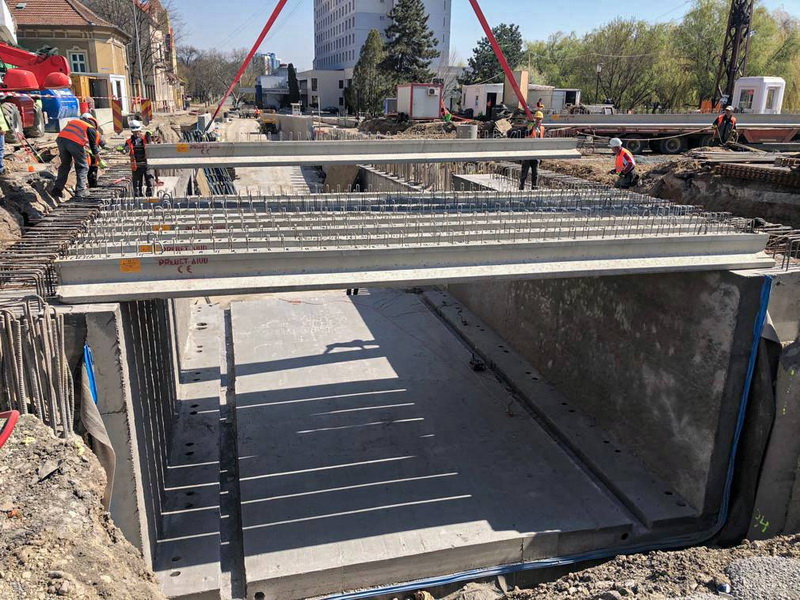 Dintre acestea, 16 au fost montate luni, iar începând de marți va fi amenajată și armătura de fier pentru ca porțiunea de pasaj să poată să fie suprabetonată. „Joi vor turna suprastructura din beton a celor 16 grinzi. Construcția va sta neatinsă o săptămână, ca să se usuce betonul, după care se va turna asfalt”, a declarat viceprimarul Florin Birta,.