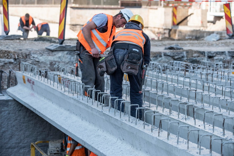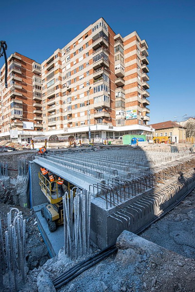 Constructorii lucrează de zor la pasajul de sub Bulevardul Magheru. Luni, aceștia au montat primele 16 grinzi din cele 51 care vor acoperi pasajul, iar de marți va fi amenajată și armătura de fier.